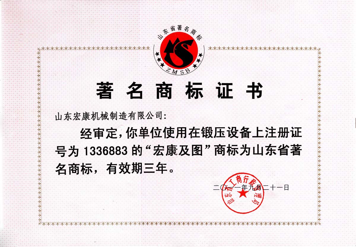 著名商标证书